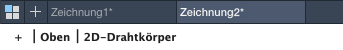 Die neue Zeichnung Zeichnung1 wird auf einer neuen Registerkarte gestartet, die sich direkt über dem Zeichenbereich befindet. Sie können auf die Registerkarten klicken, um zwischen verschiedenen geöffneten Zeichnungsdateien zu wechseln. Klicken Sie auf das Pluszeichen, um eine neue Zeichnung mit der Vorgabevorlage zu beginnen.