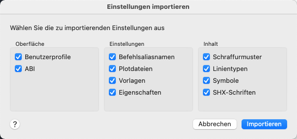 Importieren benutzerdefinierter Einstellungen in AutoCAD for Mac