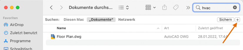 Führen Sie im Finder oder im Dialogfeld zur Dateiauswahl im Produkt beim Öffnen einer Zeichnung folgende Schritte aus: