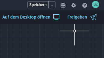 Wenn Sie in der AutoCAD-Web-App arbeiten, klicken Sie auf Auf dem Desktop öffnen, um die Zeichnung in der Desktopversion von AutoCAD zu öffnen. Ihre Zeichnung wird automatisch gespeichert und dann in der lokal installierten Version von AutoCAD Desktop geöffnet.