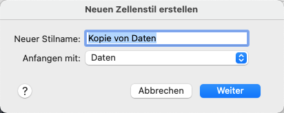 Gibt einen Namen für einen neuen Zellenstil sowie einen vorhandenen Zellenstil an, auf dem der neue Stil basieren soll.