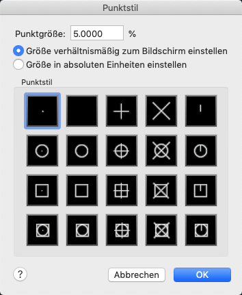 Zeigt den aktuellen Stil und die Größe von Punkten an. Ändern Sie den Punktstil, indem Sie ein Symbol auswählen.