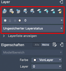 Sie können Layer bei Bedarf aktivieren oder deaktivieren. Objekte auf deaktivieren Layern sind in der Zeichnung unsichtbar.