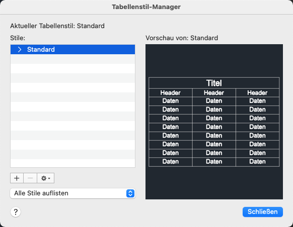- Klicken Sie auf Schließen, um den Tabellenstil-Manager zu beenden.