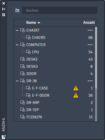 Rasche und präzise Zählung der Instanzen von Objekten in einer Zeichnung. Sie können eine Tabelle mit den Anzahldaten in die aktuelle Zeichnung einfügen.