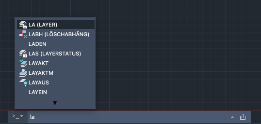 Für einige Befehle gibt es abgekürzte Namen oder Befehlsaliasse, die Sie in der Befehlszeile eingeben können. Beispiel: Statt kreis zum Starten des Befehls KREIS einzugeben, geben Sie nur k ein und drücken die EINGABETASTE. Der Befehl Vorschlag (falls verfügbar) zeigt die Aliasnamen vor dem Befehlsnamen an: C (KREIS)