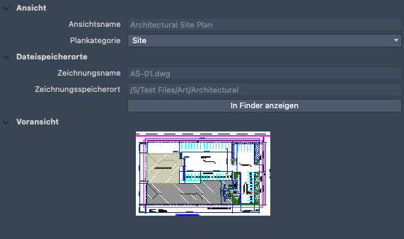 Zeigt Informationen über die Zeichnungsdatei an, in der sich die Ansicht befindet.