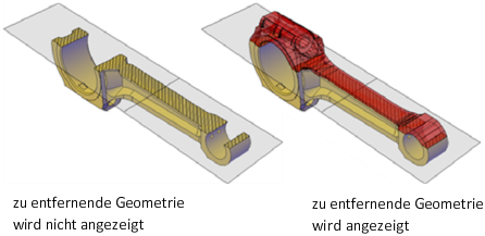 Durch Einschalten der Schnittgeometrie können Sie das gesamte Objekt anzeigen, das die Schnittebene enthält. Diese Option im Kontextmenü kann nur aktiviert werden, wenn die Schnittebene aktiv ist.
