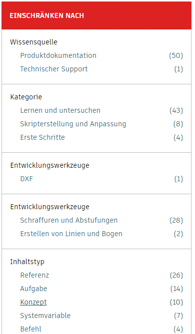 Zum Einschränken der Suchergebnisse wählen Sie einen der verfügbaren Filter im linken Fensterbereich. Die Filter können sich je nach Suchergebnissen ändern.