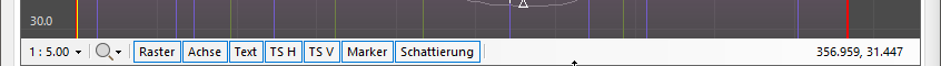 Die Statusleiste verläuft entlang der unteren Kante jedes Höhen- und Querprofilplans und enthält eine Reihe von häufig verwendeten Steuerelementen.