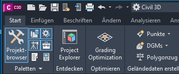 Nach Abschluss der Installation kann über die Registerkarte Start der Hauptmultifunktionsleiste von Autodesk Civil 3D auf das Project Explorer-Fenster zugegriffen werden.