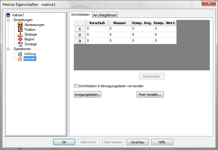 Komp. Reg. weist jedem Komp. Wert einen bestimmten Durchgang zu und wird im NC-Code als H11, H12 usw. angezeigt.