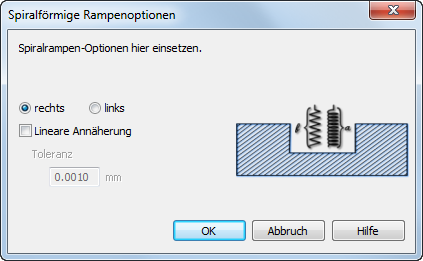 Sie können das Formular Spiralförmige Rampenoptionen verwenden, um Spiralrampen-Optionen für ein Fräsen-Feature zu bearbeiten.