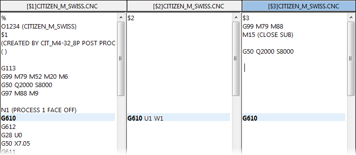Wählen Sie Warte-/Warteschlangenbefehle ausrichten aus, um die passenden Warte- und Sync.-Codes über jeden Kanal hinweg auszurichten. Auf diese Weise können Sie sehen, welche Teile des NC-Codes gleichzeitig auftreten.