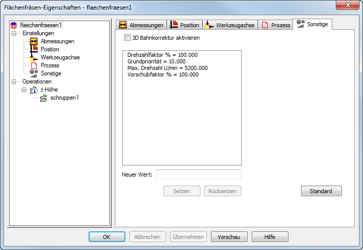 3D-Bahnkorrektur aktivieren - Weitere Informationen zur Werkzeugkorrektur finden Sie auf der Registerkarte 2,5D-Strategie.