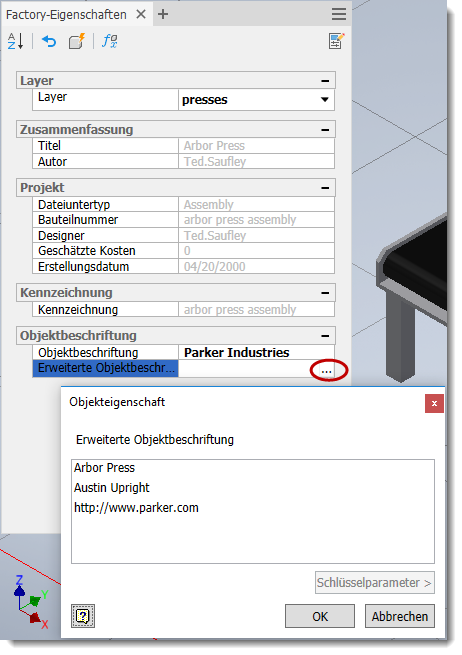 Objektbeschriftungen können für platzierte Objekte sowie importierte Modelle und Baugruppen in einem Inventor Factory-Layout erstellt werden. So erstellen Sie eine Objektbeschriftung