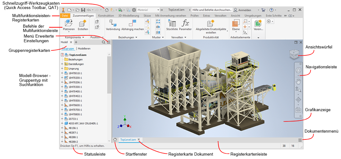 Das Inventor-Anwendungsfenster ist das Fenster, das eines oder mehrere Inventor-Dokumente enthält.