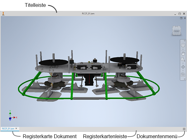 In diesem Thema werden die Elemente und das Verhalten der Fenster, in denen Inventor-Dateien angezeigt werden, erläutert.