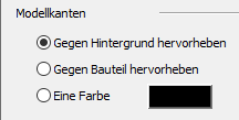Es wurde ein neues Steuerelement für die Modellkantenfarbe Gegen Bauteil hervorheben hinzugefügt. Die Option Gegen Hintergrund hervorheben hieß zuvor Bauteilfarbe.