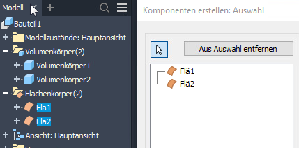 Auswählen von Flächenkörpern beim Erstellen von Komponenten