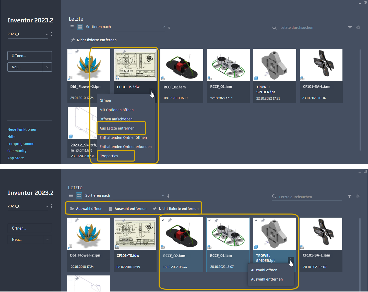 - Im Kontextmenü der Datei können Sie auf iProperties zugreifen.