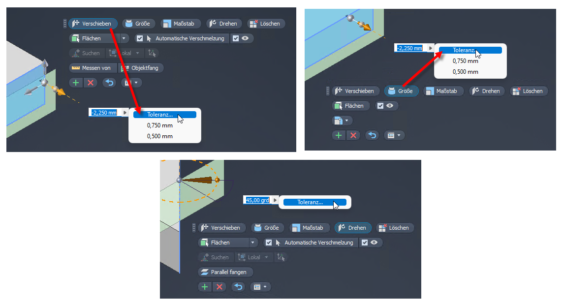 Sie können nun die Toleranz beim direkten Bearbeiten von Elementen festlegen, da die Option zum Kontextmenü für Verschieben, Größe und Drehen hinzugefügt wurde.