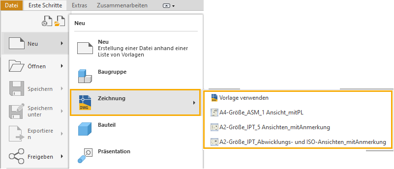 Greifen Sie beim Erstellen einer neuen Zeichnungsdatei direkt auf Arbeitsblattformatvorlagen zu.