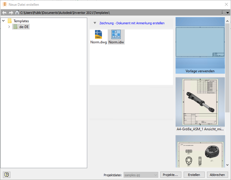 Weitere Informationen finden Sie unter Beispiele für das Erstellen einer neuen Zeichnungsdatei.