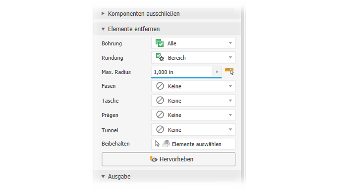 Weitere Informationen finden Sie unter Erstellen eines vereinfachten Bauteils anhand einer Baugruppe.