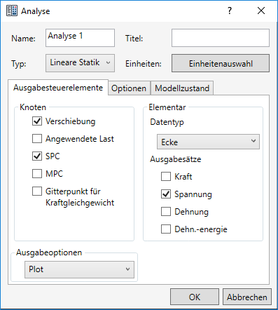 In den vorherigen Abschnitten haben wir gelernt, wie man viele primäre Analysebedingungen wie z. B. Eigenschaften und Materialien, Lasten, Abhängigkeiten und Kontakte definiert und anwendet. In diesem Thema befassen wir uns mit den Einstellungen zur Definition der Analyse selbst. Hierzu zählen der Analysetyp, die Einheiten und der vorgegebenen Kontakttyp.