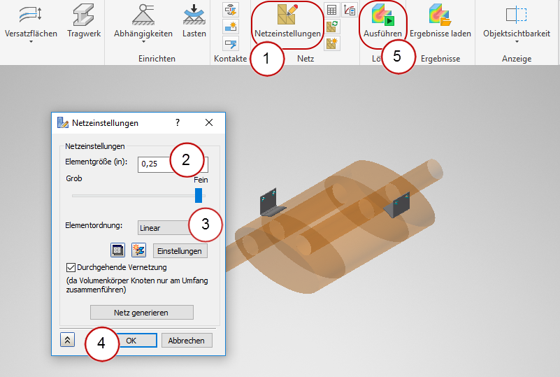 6. Vernetzen Sie das Modell und führen Sie die Analyse durch