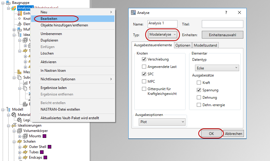 - Legen Sie den Typ auf Modalanalyse und klicken Sie auf OK.