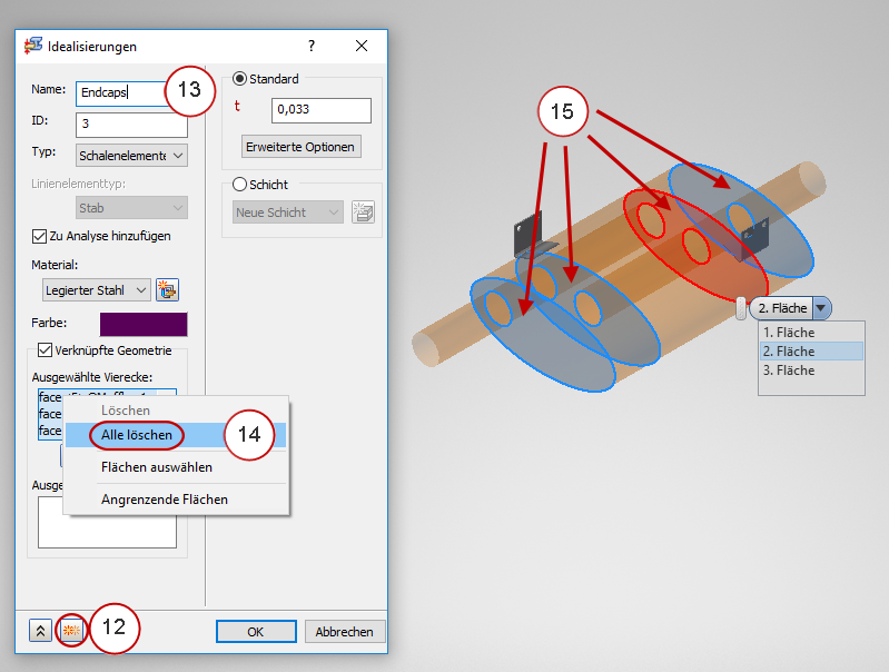 - Klicken Sie mit der rechten Maustaste in das Feld Sekundäres Objekt und wählen Sie Alle löschen. Wählen Sie die beiden angrenzenden Flächen des Schalldämpfers.