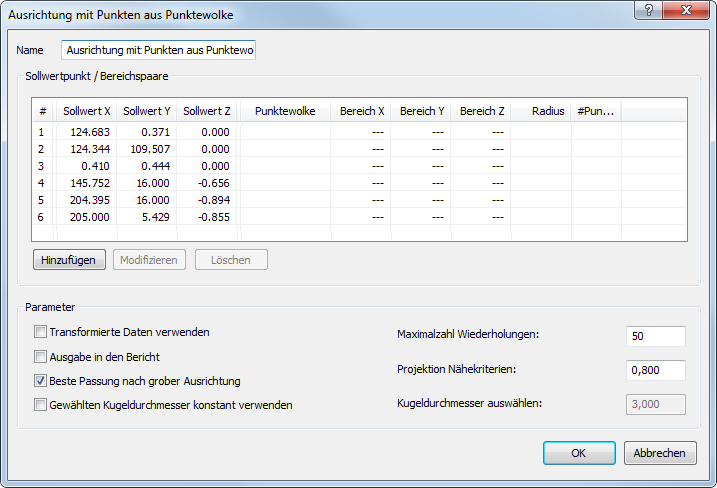 So erstellen Sie eine 'Aufgenommene Punkte'-Ausrichtung aus einer Punktewolke: