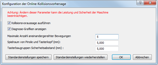 - Geben Sie im Feld Spielraum von Pinole und Tasterkopf den Abstand zwischen Tastern an, ab dem eine Abstandswarnung angezeigt wird.