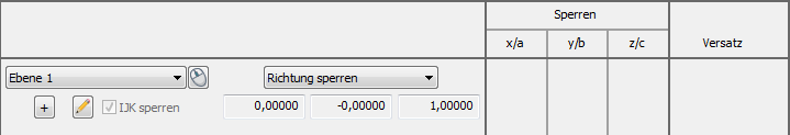 - Richtung sperren, um die Ausrichtung der Ebene festzulegen. Dies sperrt zwei Drehachsen, aber ermöglicht der Position die freie Bewegung entlang der Achse, die sich senkrecht zur Ebene befindet.
