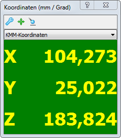 Um die Position des Tasters im Dialogfeld Koordinaten (auch als Tracker-Box bezeichnet) anzuzeigen, klicken Sie auf Werkzeuge-Registerkarte > KM-Maschine-Gruppe > Tracken.