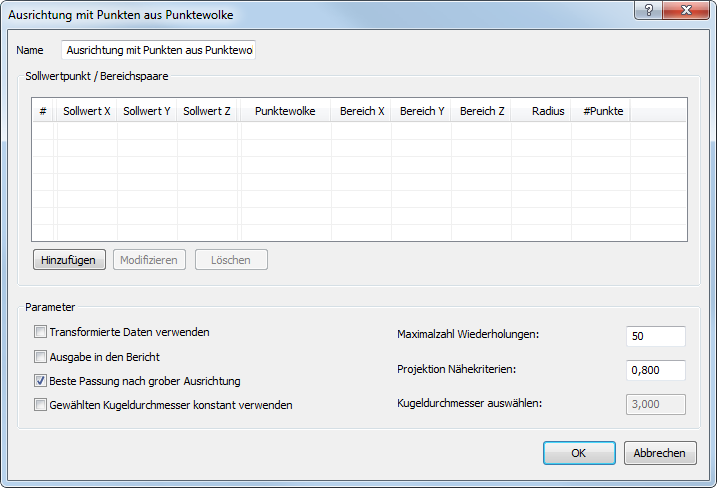 So erstellen Sie eine 'Aufgenommene Punkte'-Ausrichtung aus einer Punktewolke: