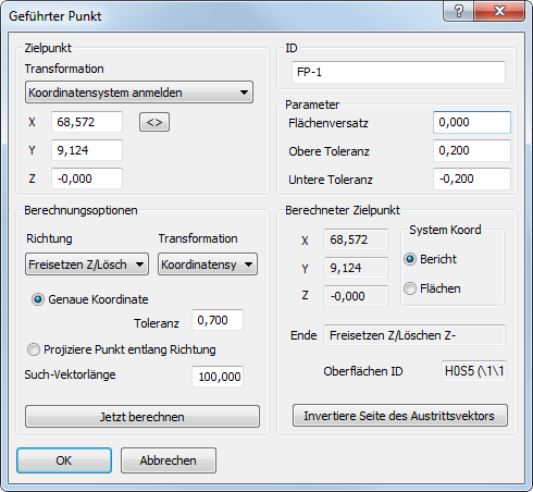 - Geben Sie in die Felder X, Y und Z zwei oder drei Sollkoordinaten für den Punkt ein.