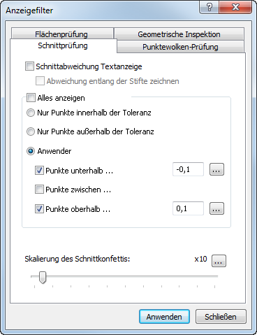 Skalierung des Schnittkonfetti - Bewegen Sie den Schieberegler, um den Abbildungsmaßstab der Abweichungsindikatoren zu ändern. Um die Obergrenze der Vergrößerung zu ändern, klicken Sie auf