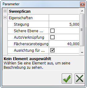 SweepScan – Erstellt einen sinusförmigen Tasterpfad wie SweepScanStrip. Sie können jedoch den Tasterwinkel oder die Höhe und Breite der Kurve nicht ändern. Zum Beispiel:
