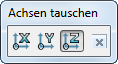 Achsen tauschen – Klicken Sie auf eine der Schaltflächen, um eine Richtung für die Arbeitsebenenachsen anzugeben. Richten Sie beispielsweise die Z-Achse entlang einer Achse, die aktuell die X-Achse ist, aus.