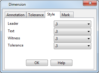 Wählen Sie in jeder Liste eine Option, um den Stil der Bemaßungen festzulegen: