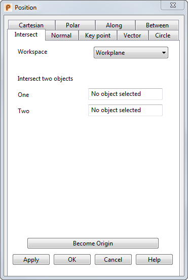 Ausführen - Gibt die Position ein. Wenn die aktuelle Operation mehrere Punkte zulässt, bleibt das Dialogfeld geöffnet, sodass Sie weitere Punkte eingeben können. Ansonsten wird der Dialog geschlossen.