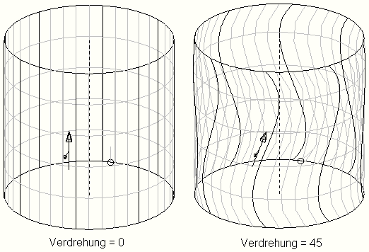 Sie können die Bauchungs- und Verdrehungswinkel ändern, die entweder entlang einer Longitudinalen oder über eine Laterale definiert werden.