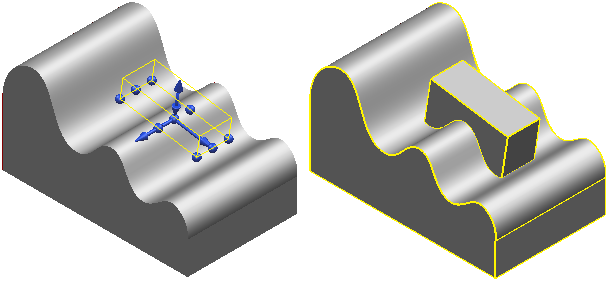 , um in den Erstellungsmodus zu wechseln. Gesamtabmessungen – Geben Sie die Abmessungen des Merkmals in die Felder Länge, Breite und Höhe ein.