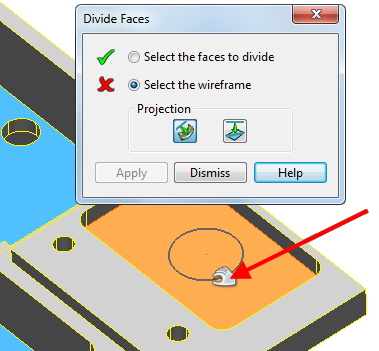 - Wählen Sie eine geeignete Projektionsoption aus.Bei Drahtmodell längs der Flächennormalen projizieren handelt es sich um die Vorgabeeinstellung.