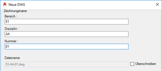 Nach dem Konfigurieren des Dateiformats richten sich alle innerhalb eines Projekts erstellten Dateien nach dem festgelegten Muster. Das Dateibenennungsformat wird jedoch nicht erzwungen, und Konstrukteure können beim Erstellen neuer Zeichnungen das Format überschreiben, falls gewünscht.