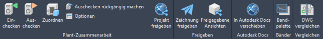 Auschecken. Ermöglicht das manuelle Auschecken der aktiven geöffneten Zeichnung aus der Cloud.