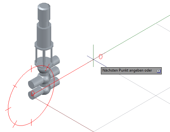 - Verwenden Sie für den Startpunkt den Knotenfang (Punkt), um einen Anschluss auf einer Seite des Ventils festzulegen.